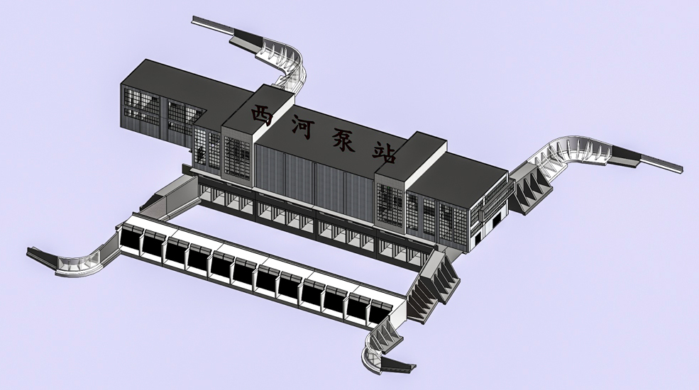 西河泵站设计流量400m3/s,为目前国内单体最大的泵站工程。我公司非常重视大中型水利项目BIM应用与研究,项目设计初期即成立了BIM小组,建立了全专业BIM模型。