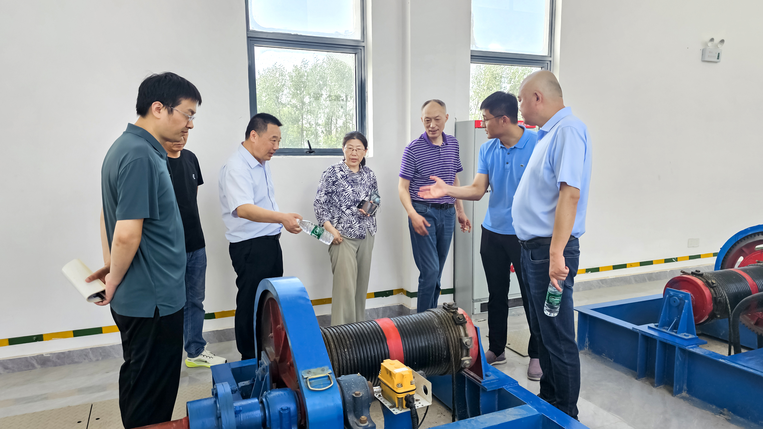 在正在施工的涟中挡洪闸和新建成的公兴河梯级闸工程现场,调研组与相关人员围绕项目功能、布局、施工组织与进度管控等核心要素进行交流,并就结构优化、新型施工工艺应用等关键技术问题进行探讨,为后续施工标准化、精细化推进提供了指导。针对公兴河梯级闸水工建筑造型设计、闸室结构优化展开讨论,梳理了现有设计在功能实现、景观融合、运维便捷性等方面的经验得失。