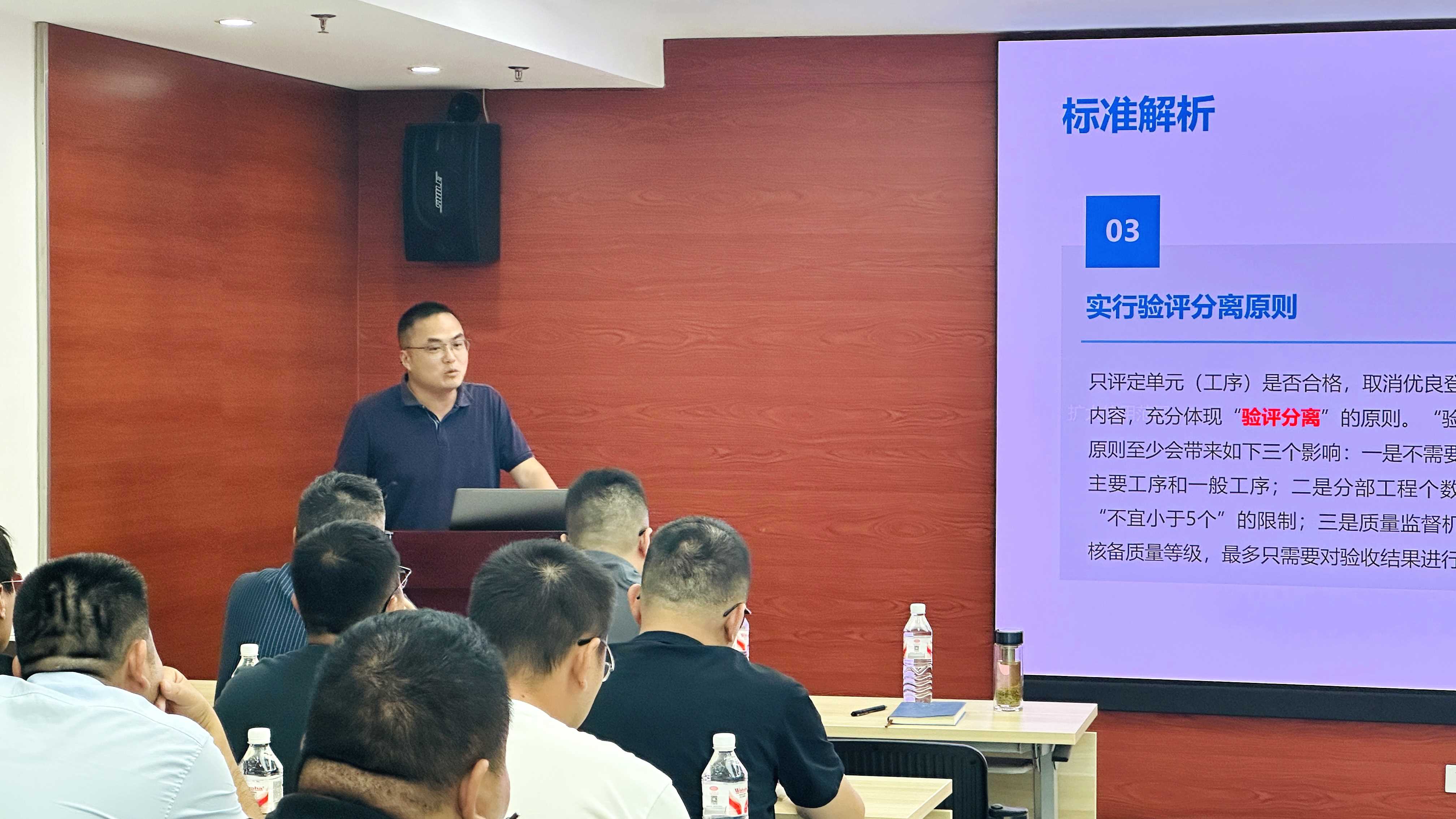 技术规范与标准深化:技术负责人、副总经理陈言兵,深度解读水利工程行业质量验收规范,重点强调新规范工程验收实行的“验评分离”原则、验收标准的调整、重新界定的“验收主体”与责任划分等。